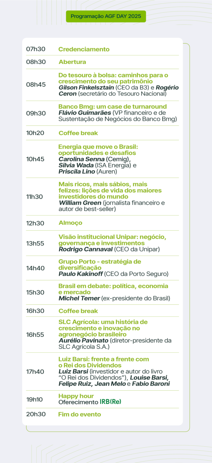 Não. O AGF Day é uma experiência ao vivo e exclusiva para quem estiver presencialmente no evento.